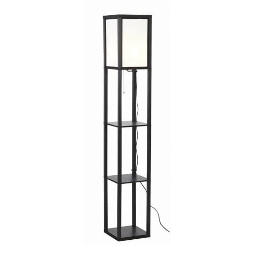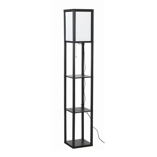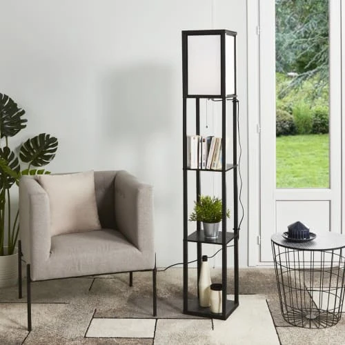 Lampadaire avec 3 Etagères en Bois Noir de la gamme Amelie.Un gain de place essentiel avec ce luminaire offrant 3 étagères. Le must du mobilier 2 en 1 !Structure en bois teinté noir – Abat-jour blanc diffusant.Dimensions : 26 x 26 x H160cm.Type ampoule E27 – Puissance max.60W