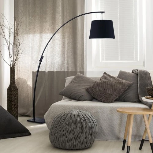 Lampadaire en Métal Abat-Jour Tissu et Base Marbre Noir de la gamme Olly.Ce lampadaire en arc possède une base en marbre noir lui apportant une touche chic et moderne. N’hésitez plus à mettre du style dans votre salon grâce à ce lampadaire.Base pied en Marbre noir, arc en métal et abat-jour en tissu noir.Dimensions : 35 x 25 x H188cm.Type ampoule E27 – Puissance max.60W