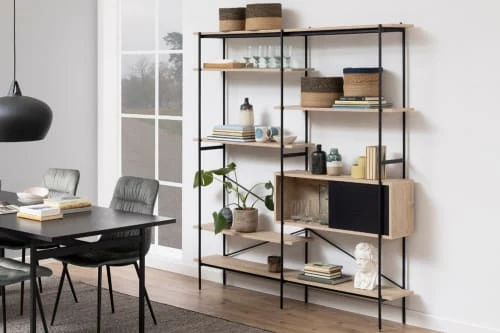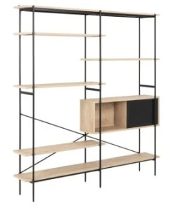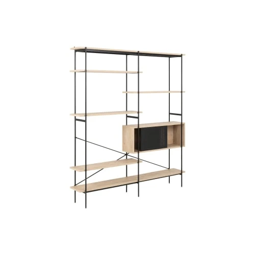 Type de rangements : 5 étagères et 1 niche avec porte coulissante