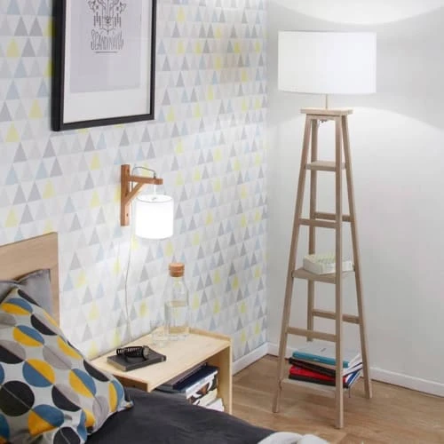 Lampadaire de la collection Booky de Corep, composé d’un piétement en bois naturel agrémenté d’étagères et d’un abat-jour de forme cylindrique habillé de coton, Booky est équipé d’un câble d’alimentation avec interrupteur.Avec son pied en bois, ce lampadaire d’inspiration scandinave ne passera pas inaperçu. Élégant et pratique, il mise sur le chic des matériaux naturels et sur son design intemporel. Ampoule : 1x60W E27 (non fournie).