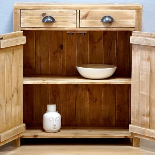 Les finitions sont toutes réalisées à la main, sans solvants et sans produits toxiques pour la santé de tous et le respect de l’environnement. Les imperfections apparentes du bois font de chaque meuble une pièce unique et authentique.