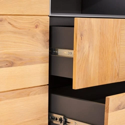 Le chêne magnifiquement travaillé dans des tons foncés s’harmonise parfaitement avec le design simple de la poignée et ajoute une touche moderne et fonctionnelle à votre intérieur.