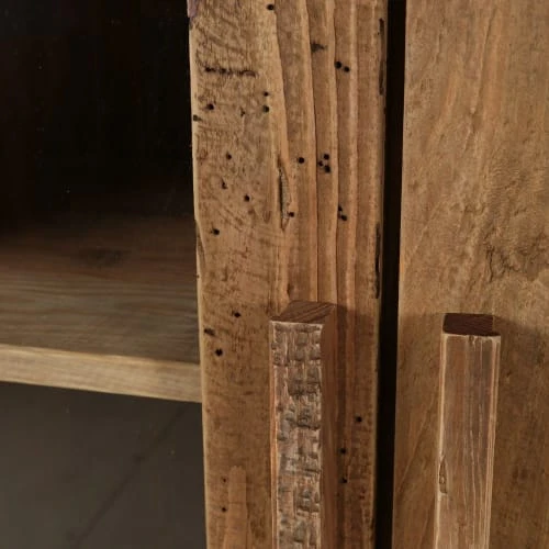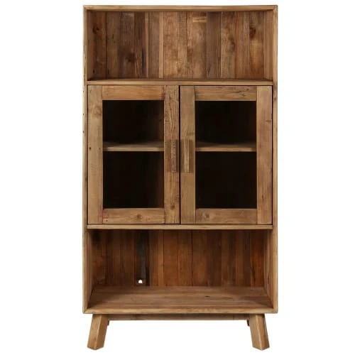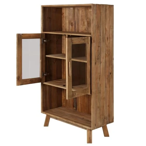 Informations techniques : Dimensions : L x P x H : 90 x 40 x 160 cm. Poids total du produit : 49 kg. Informations additionnelles : Dimensions des étagères du haut des portes vitrées : 42 x 32,5 x 34 cm.Dimensions des étagères du bas des portes vitrées : 42 x 32,5 x 29,5 cm.Dimensions de la niche supérieure : 85,5 x 36 x 33 cm.Dimensions de la niche inférieure : 85,5 x 36 x 37 cm.Attention, les pieds de ce meubles sont à monter soi-même.À monter soi-mêmeLes meubles de la collection Nebraska sont réalisés à partir de pin recyclé. Les photos présentées pour chaque produit sont donc non-contractuelles puisque la couleur ainsi que les détails du pin recyclé peuvent varier selon l’arbre choisi.. Matière : Bois recyclé. Détails matières : Pin massif recyclé, peinture à l’eauVerre. Conditionnement : 1 colis : 92 x 42 x 151 cmPoids : 52 Kg