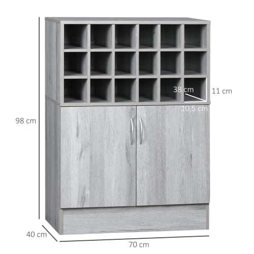 – Multi-rangement : placard 2 portes avec Ă©tagère rĂ©glable, espace range-bouteilles (x 18), vous pourrez y placer de nombreux accessoires et affaires