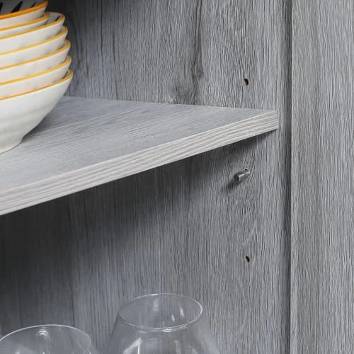 – Buffet style contemporain aspect bois avec veinage coloris gris apportant charme et Ă©lĂ©gance Ă votre intĂ©rieur
