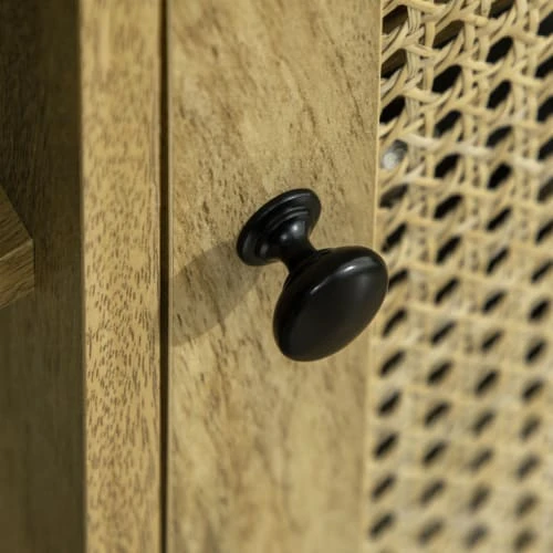 – Buffet style bohème une porte avec cannage en rotin et aspect bois de manguier apportant charme et élégance à votre intérieur
