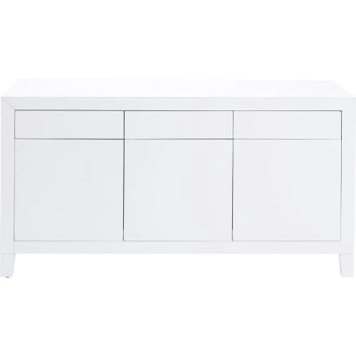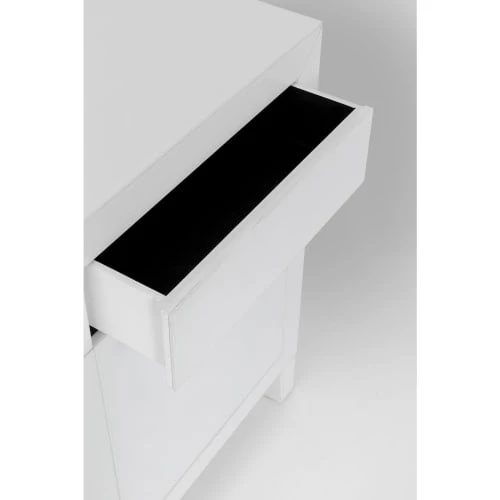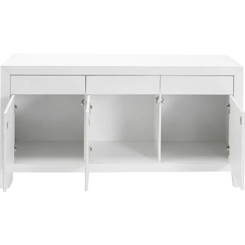 Ce buffet, au design moderne et élégant, est composé de panneaux en miroir teint. Ses 3 tiroirs et 3 portes s’ouvrent à l’aide d’une fonction “push-to-open” ce qui rend le buffet très pratique et fonctionnel. La gamme Luxury comprend également une console, un meuble TV, un chevet, une commode, un bureau et un chiffonnier. Livré avec les pieds à monter. Fonction pousser-pour-ouvrir (push to open). Entretien : Passez un chiffon en microfibre pour enlever les traces de doigts et autres salissures de la surface. Ne nettoyez pas avec des tissus rugueux qui risquent de rayer le miroir. N’oubliez pas de protéger vos surfaces des dessous de coupes, bougeoirs ou tout objet de décoration qui pourrait provoquer des rayures permanentes.
