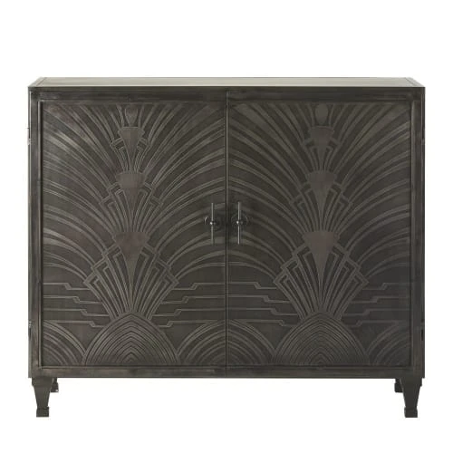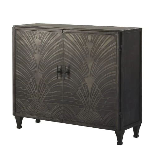 Le buffet en métal noir mat sculpté GOTHAM reprend les codes du style indus avec une pointe d’exotisme. Doté de 2 portes sculptées à la main, ce meuble de rangement offre une véritable pièce unique à votre intérieur. Côté déco, il se combinera facilement à des meubles factory. Un conseil ? N’hésitez pas à y associer une touche de couleur sur son plateau. Effet garanti !