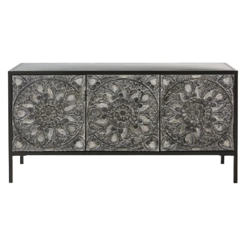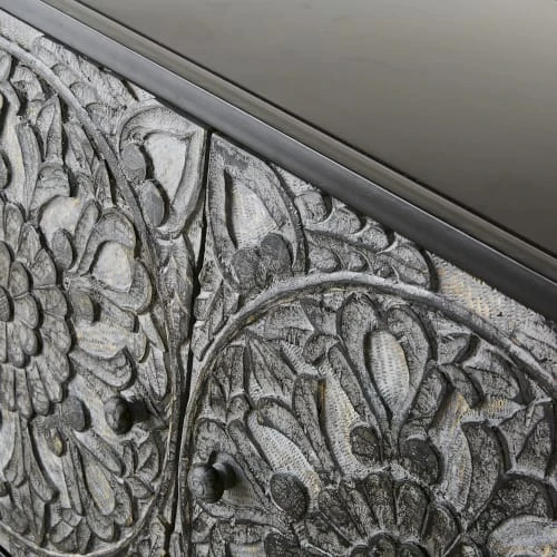 Portes sculptées à la main : manguier, finition mélange de peinture acrylique blanche et noire, cire transparente