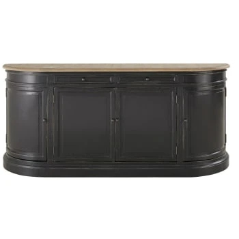 Envie d’authenticité au cœur même de votre pièce de vie ? Succombez aux formes arrondies du buffet 4 portes 2 tiroirs en pin recyclé noir PROVENCE. Avec une structure et des tiroirs en pin recyclé noir, un plateau en placage de pin recyclé et en contreplaqué, des poignées en métal coloris laiton et son effet patiné et vieilli, il a le chic qu’il faut, du charme point trop n’en faut, et un soupçon de nostalgie. Quoiqu’il en soit, il sera du plus bel effet dans votre salle à manger. Cela ne fait aucun doute : ce buffet est celui qu’il faut pour un rangement optimisé. Et croyez-nous : du rangement, vous en aurez avec les 2 tiroirs, et l’étagère fixe qui se trouvent derrière les 4 portes.</p>
