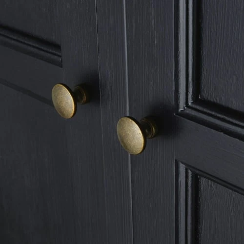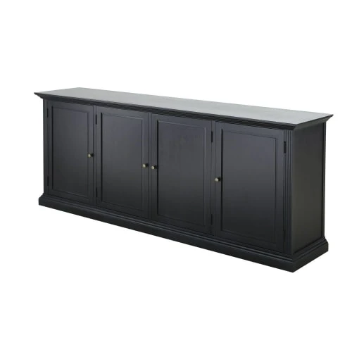 Structure : Mélange de panneaux de fibres de moyenne densité et de pin massif, finition peinture acrylique coloris noir et vernis acrylique transparent mat, effet coups de pinceau.