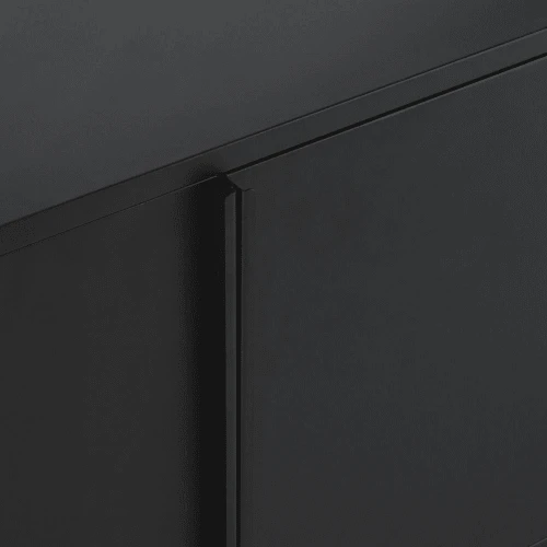 Structure, panneau du dessus, du dessous, des côtés, de fond, étagères et portes (4) : métal, finition peinture époxy coloris noir mat