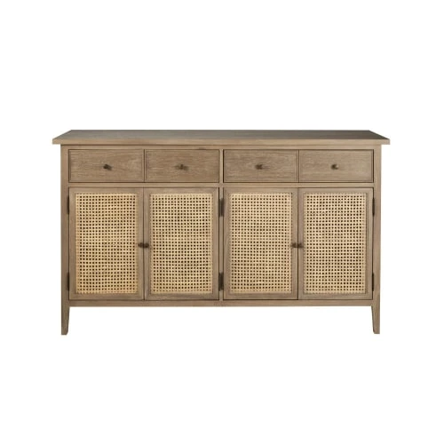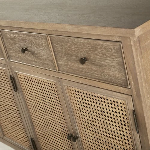 Portes (4) : cadre en acacia et façade en rotin tressé