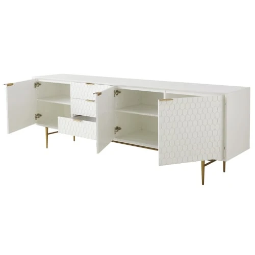 Panneaux du dessus, de côté et de dos, portes, tiroirs et étagères : panneaux de fibres de moyenne densité (E1), finition peinture acrylique col. blanc satiné