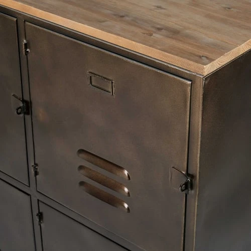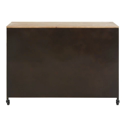 - L’épaisse planche en bois de sapinmassif apporte un brin de modernité à ce buffet en métal