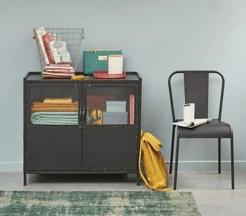 Le buffet en métal noir Edison est un petit vaisselier qui emprunte son design à la déco industrielle.