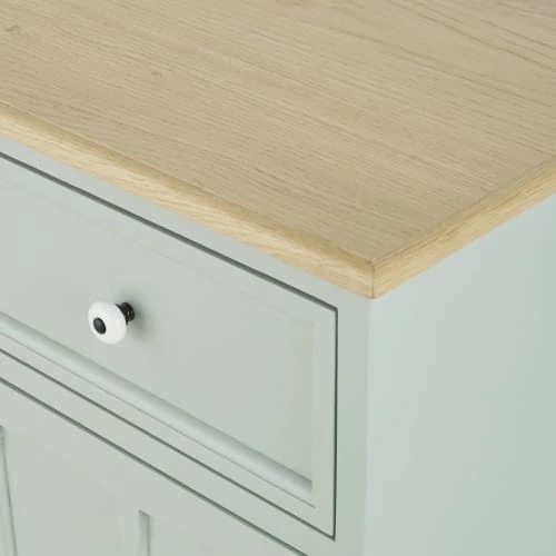 Côtés, tiroir, porte et étagère : panneaux de fibres de moyenne densité, coloris vert de gris