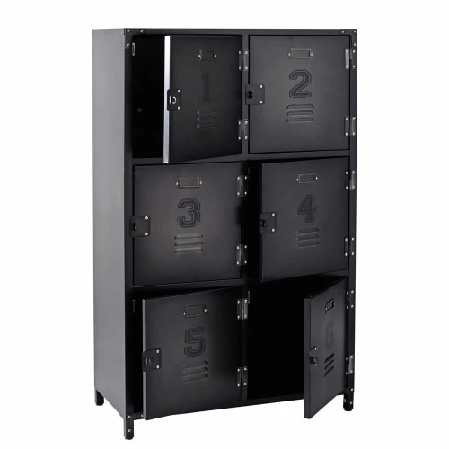 Tout en métal, ce cabinet de rangement indus 6 casiers en métal ANDREWS adopte l’esprit fonctionnel du style industriel pour mettre un peu d’ordre dans la chambre de votre ado. Composé de 6 casiers numérotés, ce meuble de rangement possède également des porte-étiquettes pour les plus consciencieux. Fidèle au style indus, ce cabinet en métal donnera un cachet unique à sa déco.