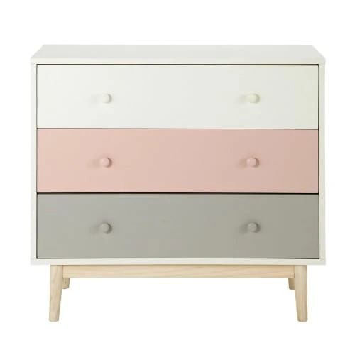 De design sobre, cette commode vintage3 tiroirsblanche, rose et grise BLUSHapportera douceur et fraîcheur à la déco de votre enfant. Pratique avec ses 3 grands tiroirs, cette commodepossède un beau volume de rangement. Le détail déco : les tiroirs colorés qui contrastent joliment avec le blanc. Notre conseil : décorez son plateau avec des objets déco coordonnés. Et pourquoi pas une lampe rose ?</p>
