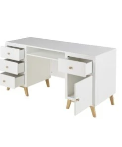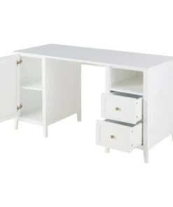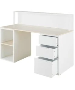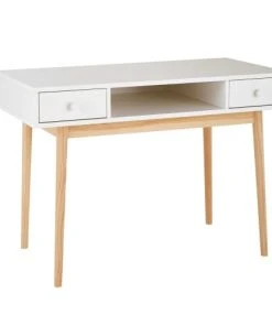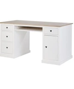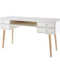 Maisons Du Monde Bureau 3 Tiroirs Et 2 Niches Blanc Et Beige