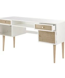 Maisons Du Monde Bureau Bicolore 2 Portes 2 Tiroirs Cannage En Rotin