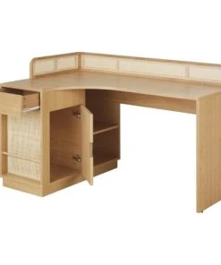 Maisons Du Monde Bureau D’angle 1 Porte 1 Niche Beige Et Cannage En Rotin