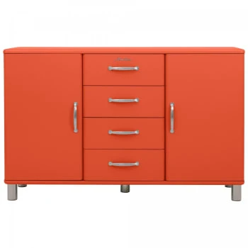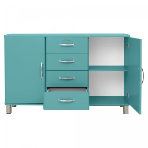 matière : Matériaux : Bois (MDF) + métal Pieds : Métal Type de bois : MDF Nombre de tiroirs : 4 Nombre de portes : 2 Nombre d’étagères : xxx