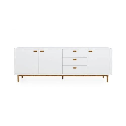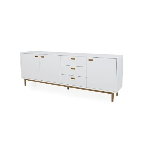 matière : Matériaux : Bois (MDF + chêne) Pieds : Bois (chêne) Type de bois : MDF + chêne Nombre de tiroirs : 3 Nombre de portes : 3 Nombre d’étagères : xxx