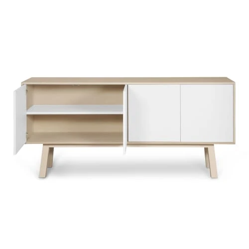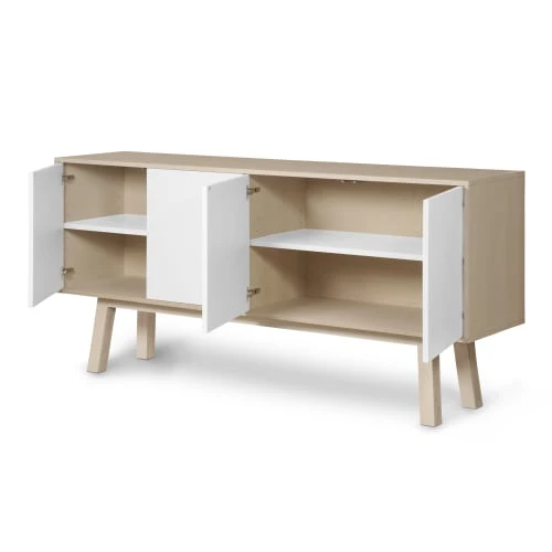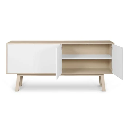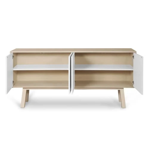 – Piétement, base du buffet et étagère en frêne massif de France – finition légèrement blanchie