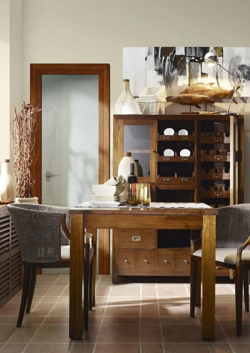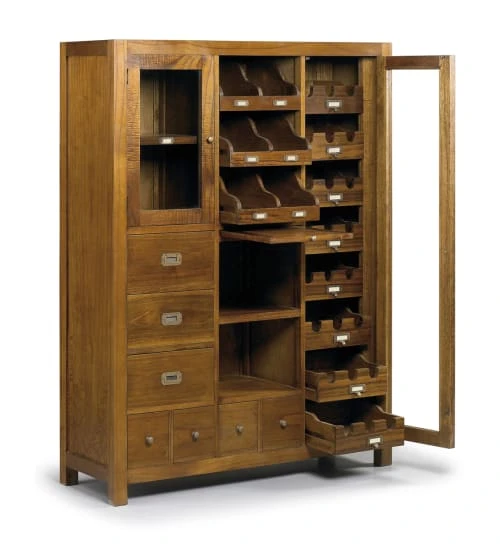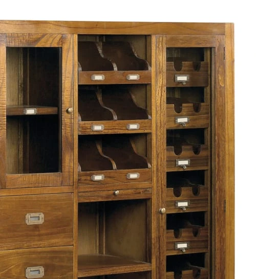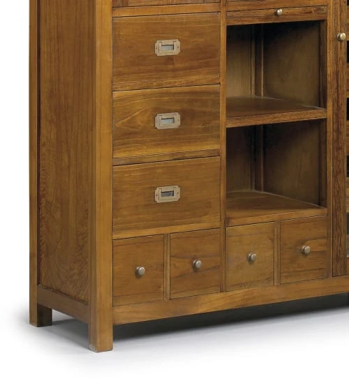 Buffet de la collection STAR de style colonial. Il est fabriqué à la main en bois de Mindi et accessoires en bronze. Combinaison de style et fonctionnalité. Avec 7 tiroirs, une porte avec étagère, 2 espaces de rangement et 11 tiroirs-plateaux, ce buffet a une grande capacité de rangement. Aucun assemblage nécessaire.