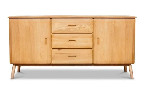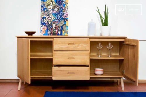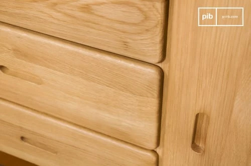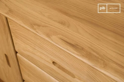 Ce produit vous est proposé par la marque pib. Bois clair, rondeur et grands volumes. Le buffet en chêne Kadrell est un meuble de rangement dont les lignes arrondies et le bois clair révèlent un design sobre et soigneusement réalisé. Les arrêtes arrondies du buffet en chêne Kadrell sont douces et soigneés, pour un rendu travaillé au niveau de chaque partie du meuble, des portes, des tiroirs, du plateau ainsi que des poignées. Ses lignes sont intemporelles et elles font de ce buffet un meuble de rangement indémodable. Sa robustesse lui permettra également de résister aux objets lourds et au temps sans difficulté.