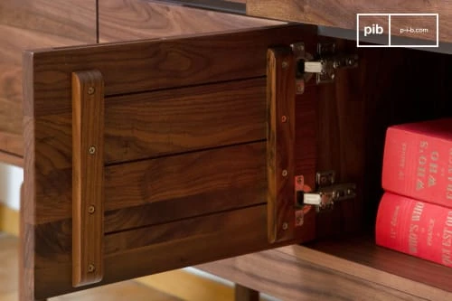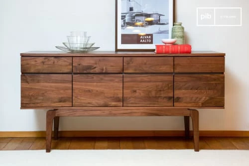 Ce produit vous est proposé par la marque pib. Un magnifique meuble de rangement moderne en noyer vernis mat. Cet étonnant meuble d’enfilade en noyer d’inspiration art déco vous charmera avec ses lignes droites nuancées de rondeurs et sa finition matte mettant en valeur de magnifiques veines de bois. Présentant quatre portes surmontées de tiroirs aux poignées dissimulées dans leur épaisseur, cette commode/bahut offre une belle hauteur grâce à un beau piétement travaillé en arrondis subtils. Facile à associer, ce meuble trouvera sa place indifféremment dans une chambre ou un salon et accueillir linge ou vaisselle.