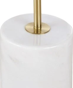 Maisons Du Monde Lampadaire En Marbre Blanc, Métal Doré Et Abat-jour En Coton Blanc H163