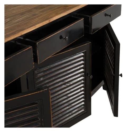 Entretien : Nettoyer le buffet avec un chiffon doux légèrement humidifié par de l’eau savonneuse. Rincer et sécher immédiatement.