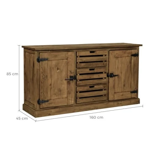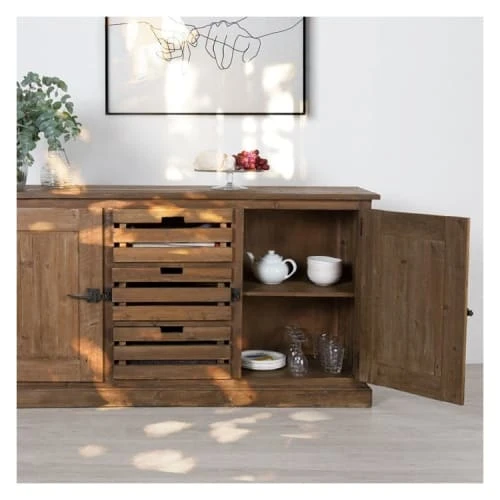 La couleur de bois utilisé pour la fabrication de ce buffet peut varier d’un produit à un autre car chaque planche en bois massif est unique et dépend de multiples facteurs pouvant influer sur le coloris final (noeuds, plan de coupe, séchage…).