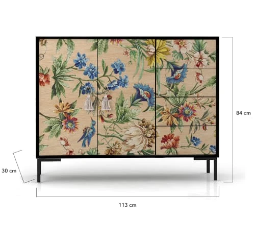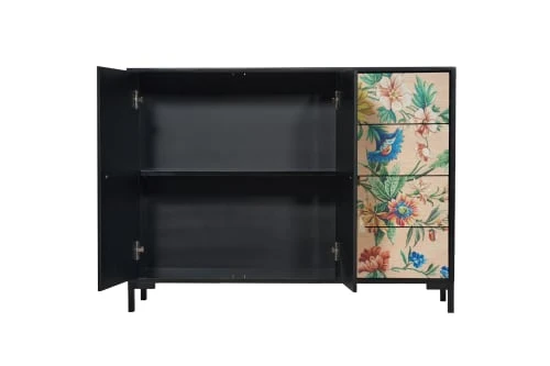 Buffet avec 2 portes et 4 tiroirs en pin massif laqué avec des peintures de haute qualité offrant une plus grande protection et durabilité.