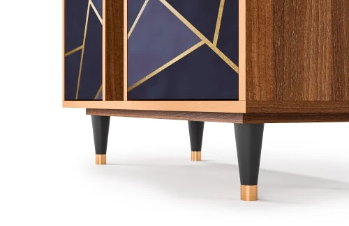 Pieds : Bois naturel avec extrémités en cuivre 12,5 cm de hauteur