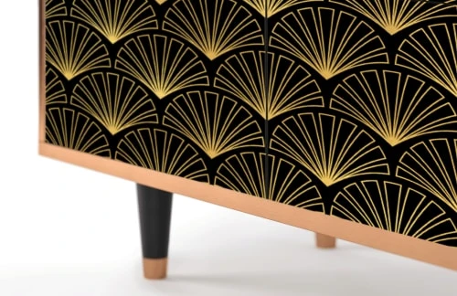 Pieds : Bois naturel avec extrémités en cuivre 12,5 cm de hauteur