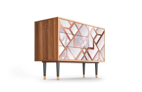 Pieds : Bois naturel avec extrémités en cuivre 25 cm de hauteur